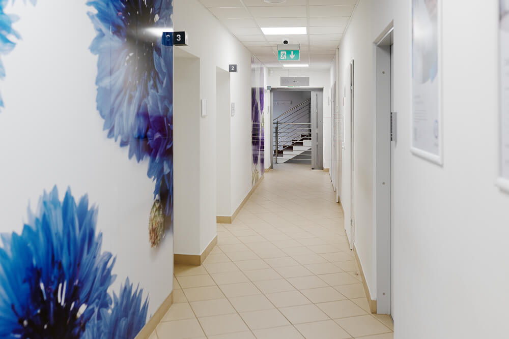 Nasze centrum medyczne mieści się w wolnostojącym budynku, wokół którego znajdują się miejsca parkingowe dla naszych pacjentów.
